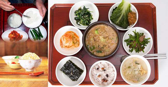 | 건강은 비싼 영양제나 보약이 아닌, 평소의 먹는 습관이 좌우한다. 왼쪽 위 사진은 30% 절식하기, 아래는 비타민 미네랄이 손실되지 않은 현미밥, 오른쪽은 자연식 위주의 건강한 밥상. | ||