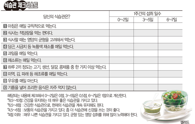 식사시간 또한 매일 일정해야 한다. 하루 세 끼를 규칙적으로 먹는 것이 건강을 지키는 기본 식습관이다. 규칙적인 식사는 위장의 부담을 덜어주고 소화를 촉진시킨다.