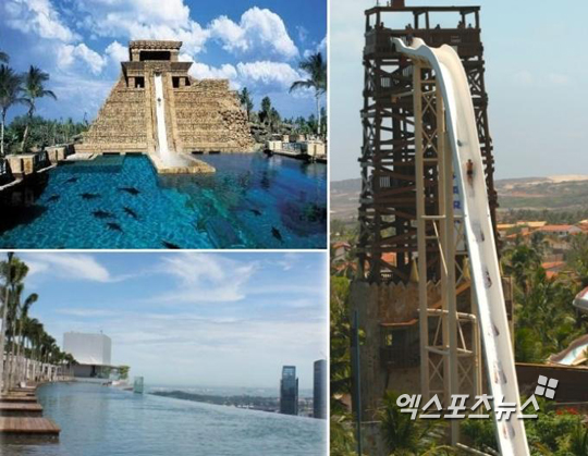 최근 온라인 게시판에는 '가장 무서운 수영장'이라는 제목으로 바하마에 있는 호텔 수영장, 싱가포르 마리나베이샌즈 호텔 옥상에 있는 수영장 모습이 공개됐다.